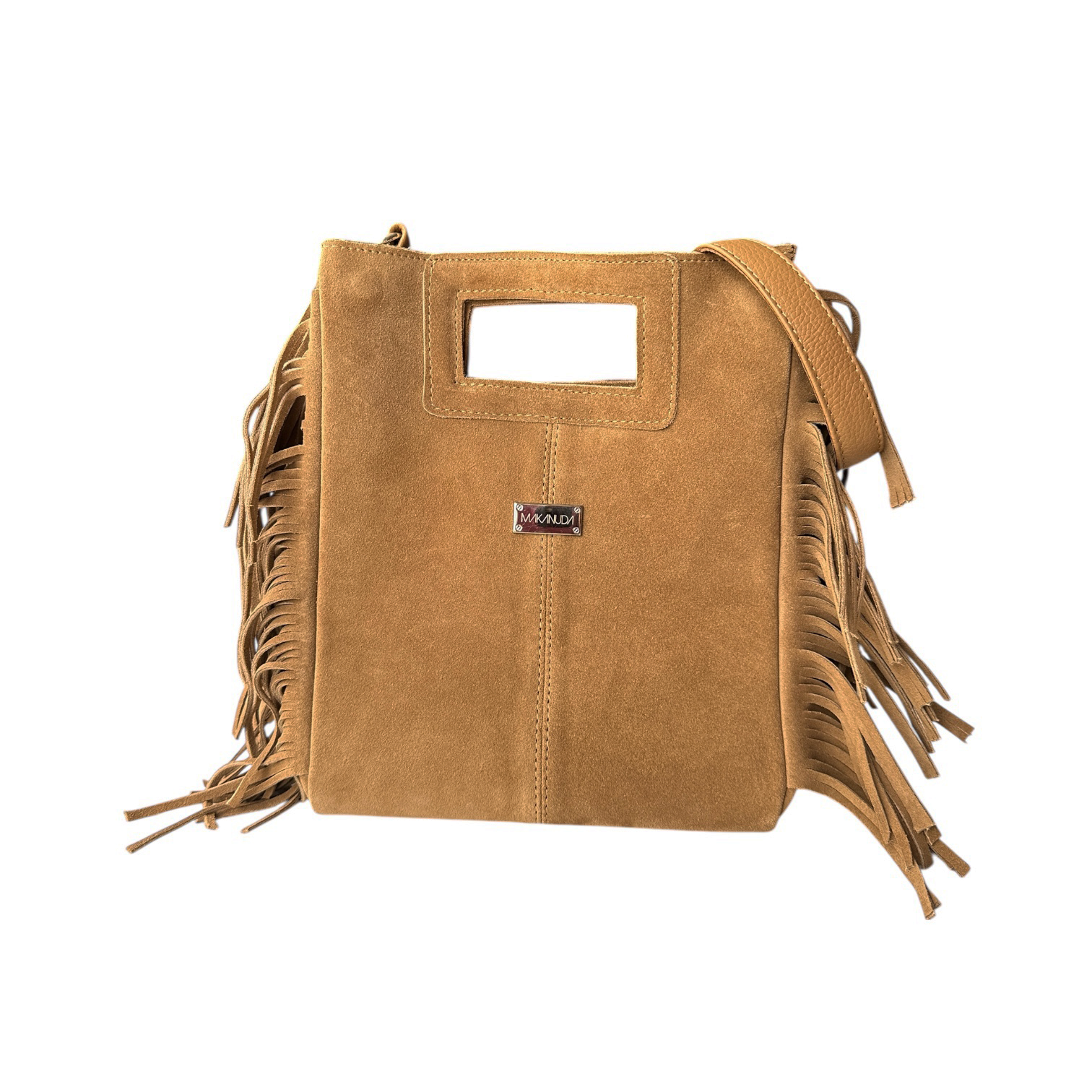 Nuestra nueva Lorena, es un bolso al hombro en una combinación de cuero de pelo y cuero coló chocolate con herrajes en color dorado, una belleza.